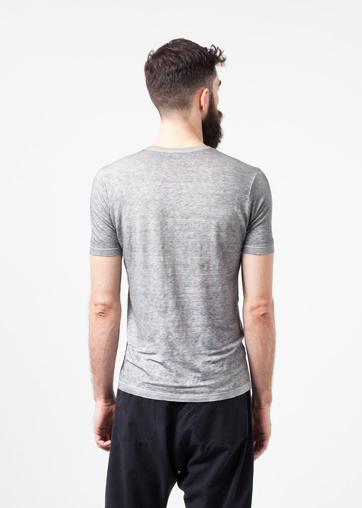 Avant Toi isn't only known for pushing stylistic boundaries, but also for marrying an urban aesthetic with functionality. Make a statement for the standard t-shirt with this one, composed of linen. Durable yet lightweight. Color Dolphin. 100% Linen. Made in Italy. Addis is wearing a Small.